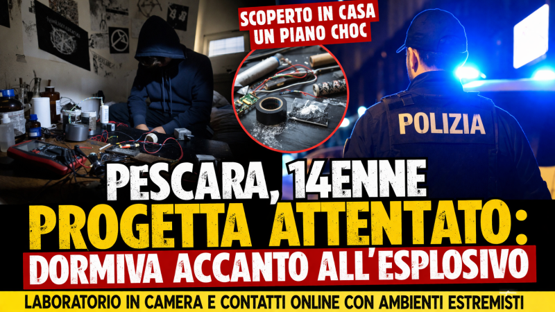 Un ragazzo di 14 anni è stato fermato a Pescara dopo che le indagini della polizia hanno fatto emergere un quadro considerato estremamente grave: il minorenne stava progettando un possibile attentato contro un edificio pubblico.