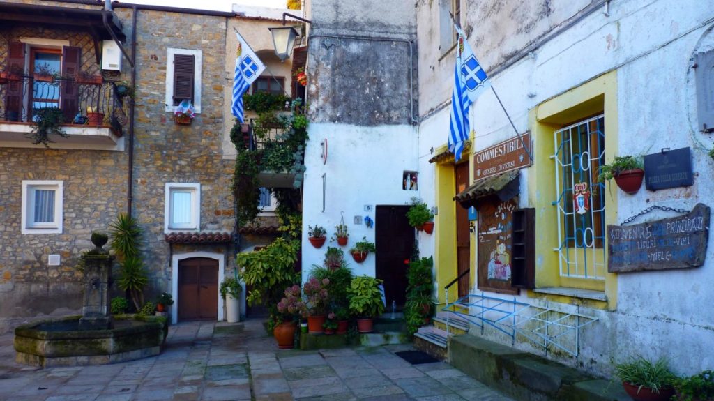 Le strade del borgo riflettono questa doppia anima: accanto al tricolore italiano, sventolano le bandiere bianco-azzurre del principato, mentre sulle cassette postali compaiono indicazioni che richiamano questa realtà parallela.